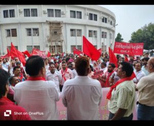 रैली निकालकर पहुंचे मंडल रेल प्रबंधक कार्यालय
