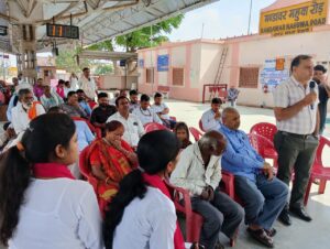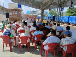 मंडावर महवा रोड स्टेशन पर रेलवे के अफसरों ने यात्रियों से किया अमृत संवाद
