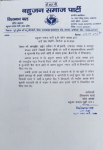 इस संबंध में प्रदेश अध्यक्ष ने बयान जारी किए गए बयान में कहा गया है कि राईन पार्टी में गुटबाजी और अनुशासनहीनता कर रहे थे। उन्हें इस संबंध में चेतावनी भी दी गई, लेकिन उन्होंने अपनी कार्यशैली में सुधार नहीं किया। ऐसे में उन्हें बसपा से निष्कासित कर दिया गया है।