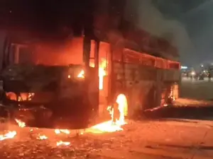 90 किमी की स्पीड में फटा टायर, बस आग के गोले में हुई तब्दील