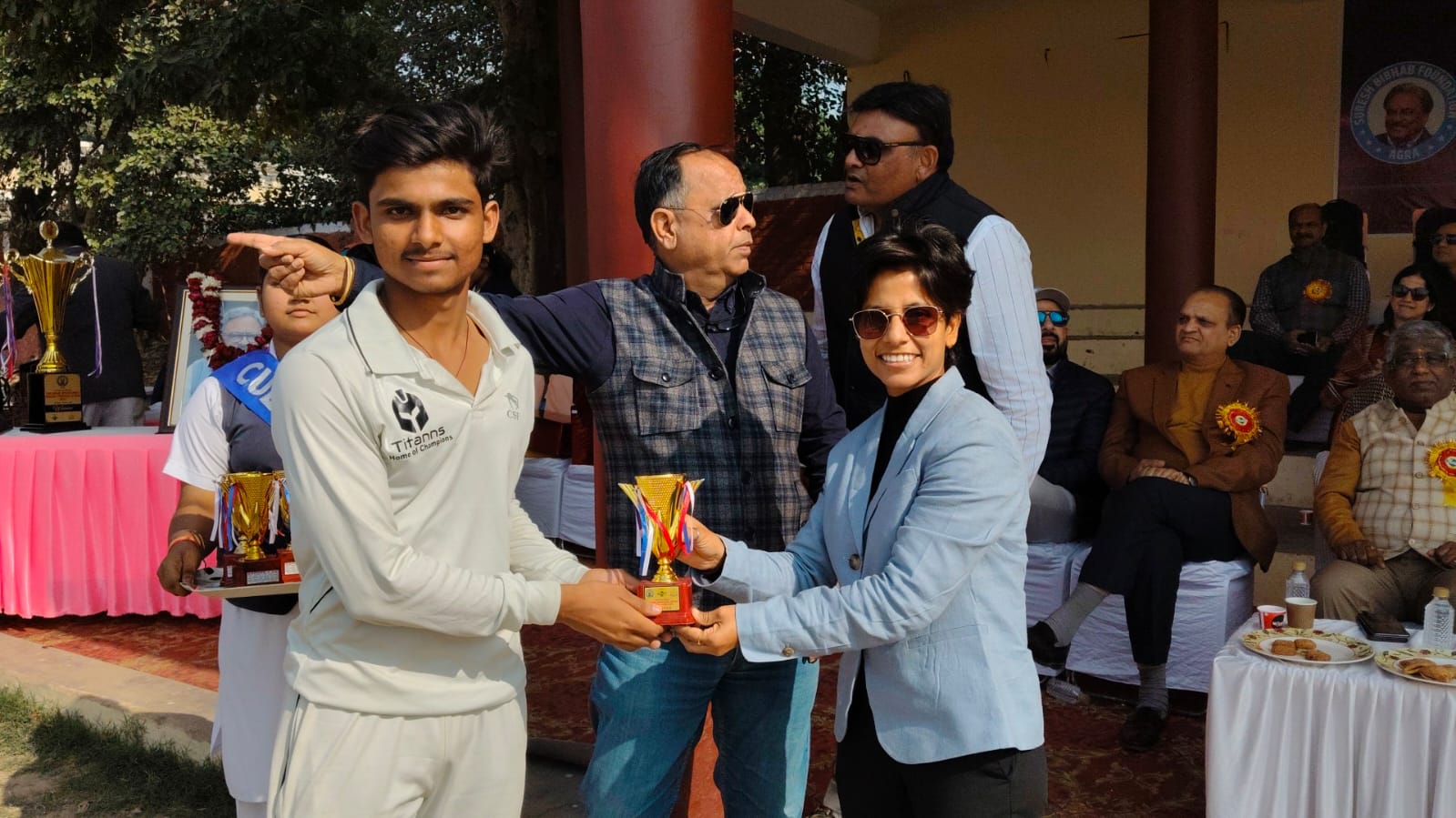 इस मौके पर सेंट जाॅन्स काॅलेज के प्राचार्य प्रो. एसपी सिंह, डीपीएस प्रिंसीपल आरके पांडे, गायत्री पब्लिक स्कूल के प्रद्युमन चतुर्वेदी, सुमित राहुल स्कूल के प्रिंसीपल रामानंद चैहान, आगरा पब्लिक स्कूल से अनिकेत शर्मा, क्रिकेटर सर्वेश भटनागर, सुमित विभव, समीर गुप्ता, मून टीवी के निदेशक राजीव दीक्षित, मनीष तिवारी, पूर्व क्रिकेटर पराग गौतम, अजय कदम, मेहुल गुप्ता, एसके सिंह, साधना गुप्ता, प्रगति गुप्ता, सुनील गुप्ता, सुशील गुप्ता, सुनीता गुप्ता, प्रभात जैन, राजीव जैन, राजीव फिलिप, पिंटू यादव, अनीश राजपूत सहित अन्य गणमान्य लोग मौजूद रहे। संचालन मून टीवी के डायरेक्टर राहुल पालीवाल ने किया।