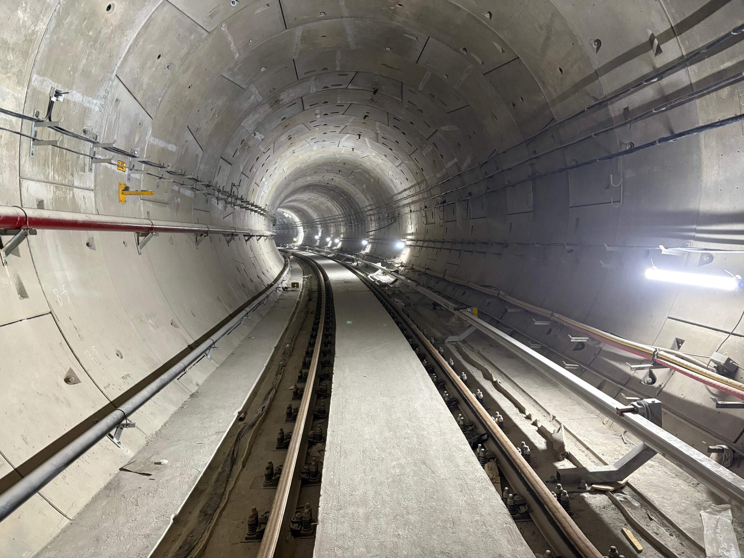 भूमिगत मेट्रो निर्माण के लिए सबसे पहले स्टेशन का निर्माण किया जाता है। स्टेशन का ढांचा तैयार होने के बाद लॉन्चिंग शाफ्ट का निर्माण कर टनल बोरिंग मशीन लॉन्च की जाती है। टीबीएम मशीन के जरिए गोलाकार टनल बनकर तैयार होती है। टनल का आकार गोल होने के कारण सीधे ट्रैक बिछाना संभव नहीं है, इसलिए यहां ट्रैक स्लैब की कास्टिंग की जाती है। इसके बाद समतल ट्रैक स्लैब बैलास्टलेस ट्रैक बिछाया जाता है। बैलास्टलैस ट्रैक निर्माण के दौरान कॉन्क्रीट बीम (प्लिंथ बीम) पर पटरियों को बिछाया जाता है। पारंपरिक तौर पर प्रयोग होने वाले ट्रैक की तुलना बैलास्टलैस ट्रैक अधिक मजबूत होता है और इसका मेन्टिनेंस भी काफी कम है।