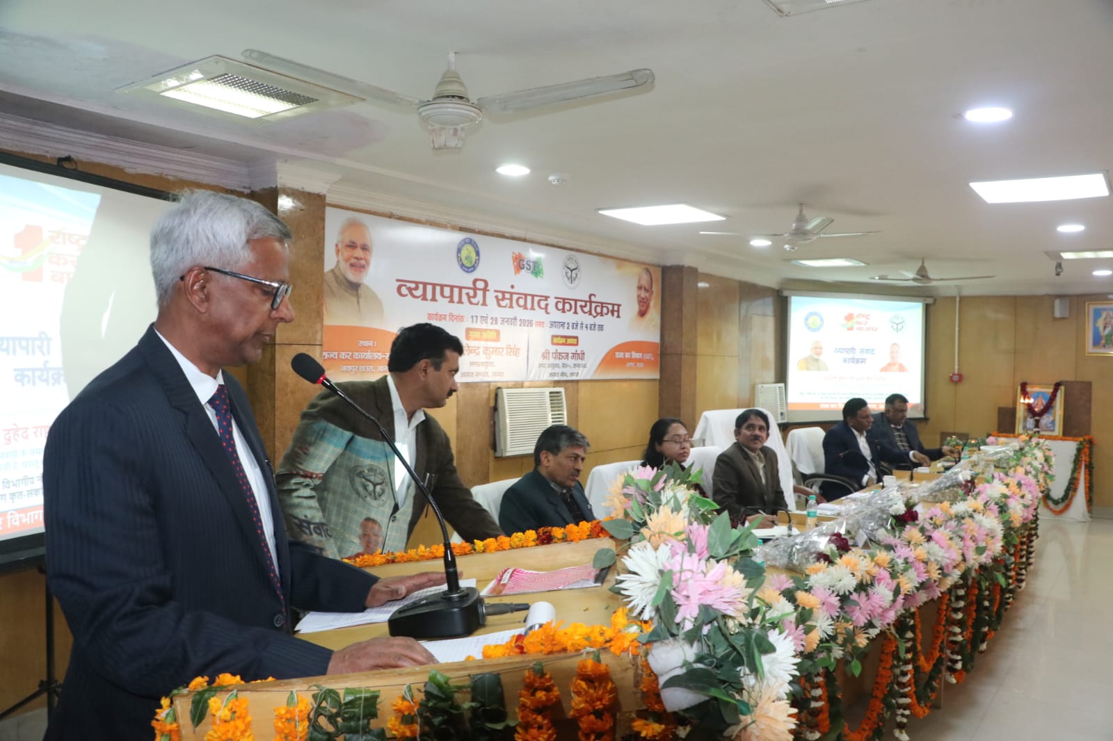 संयुक्त आयुक्त प्रमोद कुमार दुबे और सहायक आयुक्त आलोक कुमार यादव द्वारा जीएसटी प्रावधानों पर पावर पाइन्ट प्रस्तुति कर बदलावों से व्यापारियों को बताया गया। राज्य कर मुख्यालय लखनऊ से पर्यवेक्षक के रूप में आईं संयुक्त आयुक्त आरती ने व्यापारियों की समस्याओं को सुना और उन्हें सरकार तक पहुंचाने का आश्वासन दिया। इस दौरान अपर आयुक्त अंजनी कुमार अग्रवाल, संयुक्त आयुक्त प्रमोद कुमार दुबे और बीडी शुक्ला द्वारा प्रवर्तन और अन्य से संबंधित समस्याओं पर विभाग की तरफ से पक्ष रखा गया।