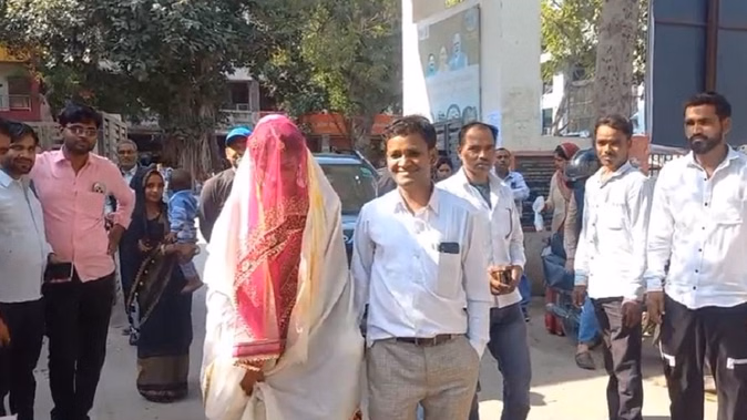 मामला सैंया क्षेत्र के लाडूखेड़ा का है। यहां 21 फरवरी को मनोज कुमार और अनिशा की शादी थी। धूमधाम से शादी की रस्में अदा की गईं। विवाह की सभी रस्में पूरी होने के बाद मनोज अपनी दुल्हन को विदा कराकर सीधे संजय प्लेस स्थित विकास भवन लेकर पहुंचा। दूल्हे के साथ घूंघट में दुल्हन को देख लोगों की भीड़ जुट गई। हर कोई हैरान था कि आखिर नवविवाहिता जोड़ा विकास भवन किसलिए आया है।