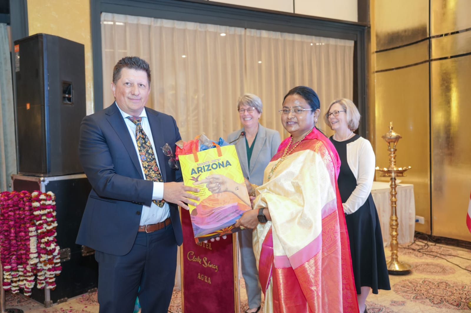 ज्वैलरी कारोबारी आनंद प्रकाश और विनय चंद्र सेठ ने कहाकि पश्चिमी देशों की साझेदारी से ज्वैलरी कारोबार को आगे बढ़ाया जा सकता है। प्रदीप वासन ने कहा कि सिस्टर सिटी एक्सचेंज प्रोग्राम के तहत व्यापार को बढ़ाने में और सहायता मिलेगी। गुप्ता ओवरसीज के चेयरमैन गोपाल गुप्ता ने कहाकि आगरा से यूरोप सहित कई पश्चिमी देशों में जूते निर्यात होते हैं। भविष्य में टेंपे व एरिजोना के लोग भी यहां आकर अपनी तकनीकी के साथ कार्य करने के लिए योजना बना सकते हैं।