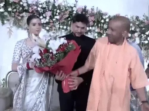 क्रिकेटर कुलदीप यादव के रिसेप्शन में पहुंचे सीएम योगी, पैर छूकर लिया आशीर्वाद, वंशिका ने जोडे हाथ