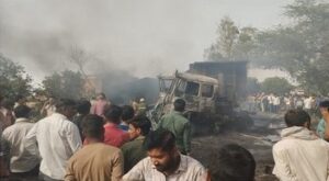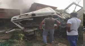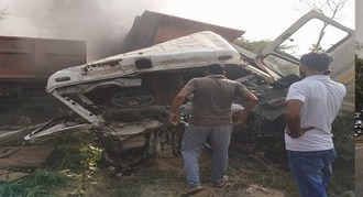 टूंडला-एटा रोड पर भिड़े दो डंपर, दोनों चालकों की जिंदा जलकर मौत, रोड जाम
