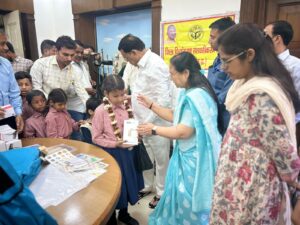 दिव्यांग बच्चों को फल वितरण कर पिछडा वर्ग कल्याण मंत्री ने किया संवाद, अपने लक्ष्य को प्राप्त करने को किया प्रेरित