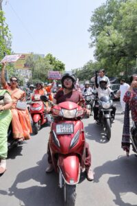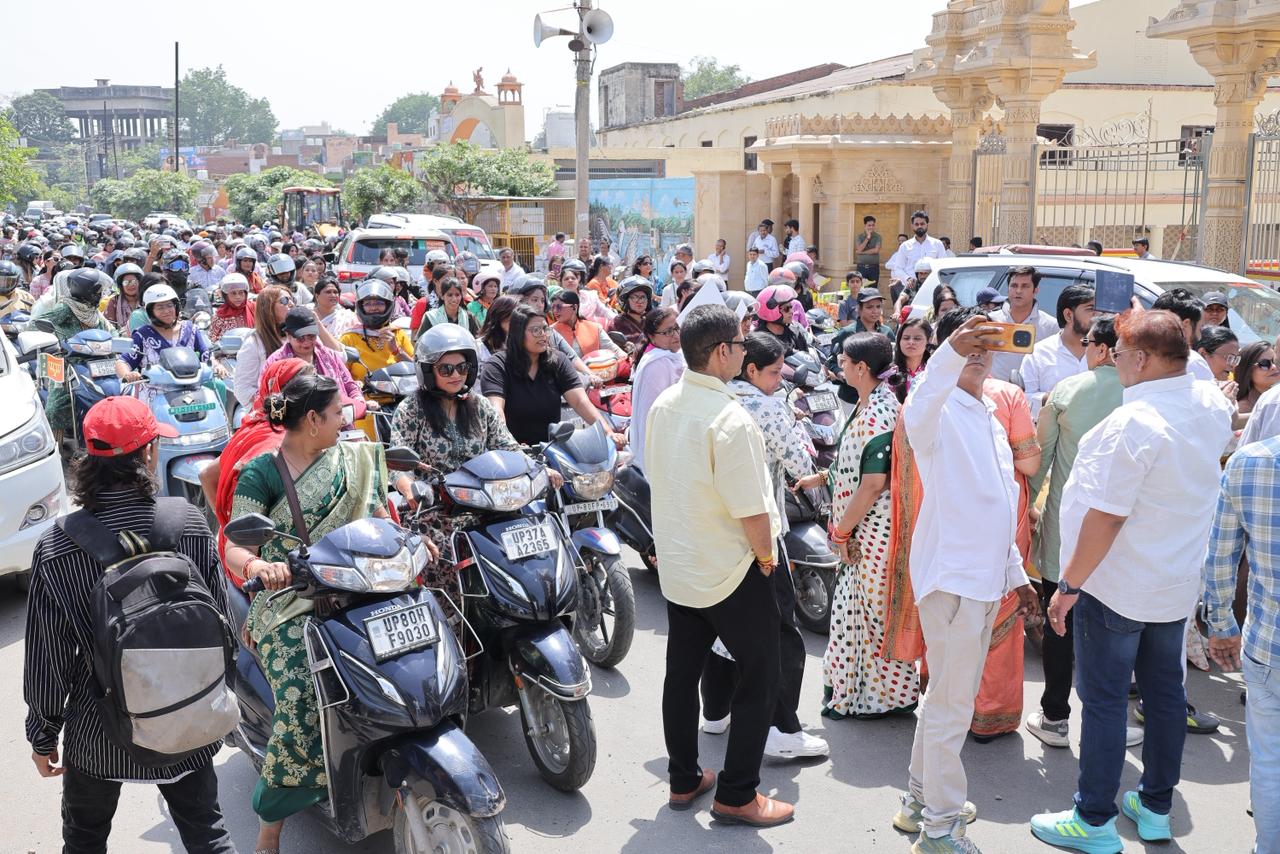 आगरा। संसद में नारी शक्ति वंदन अधिनियम पारित होने की खुशी में महिलाओं द्वारा एमजी रोड पर स्कूटर व बाइक रैली निकाली गई। महापौर हेमलता दिवाकर कुशवाहा ने रैली को हरी झंडी दिखाई। वह खुद भी स्कूटर पर सवार होकर रैली में शामिल हुईं। रैली सूरसदन चैराहा, संजय प्लेस, सेंट पीटर्स रोड होते हुए एमडी जैन इंटर कॉलेज पर समाप्त हुई।