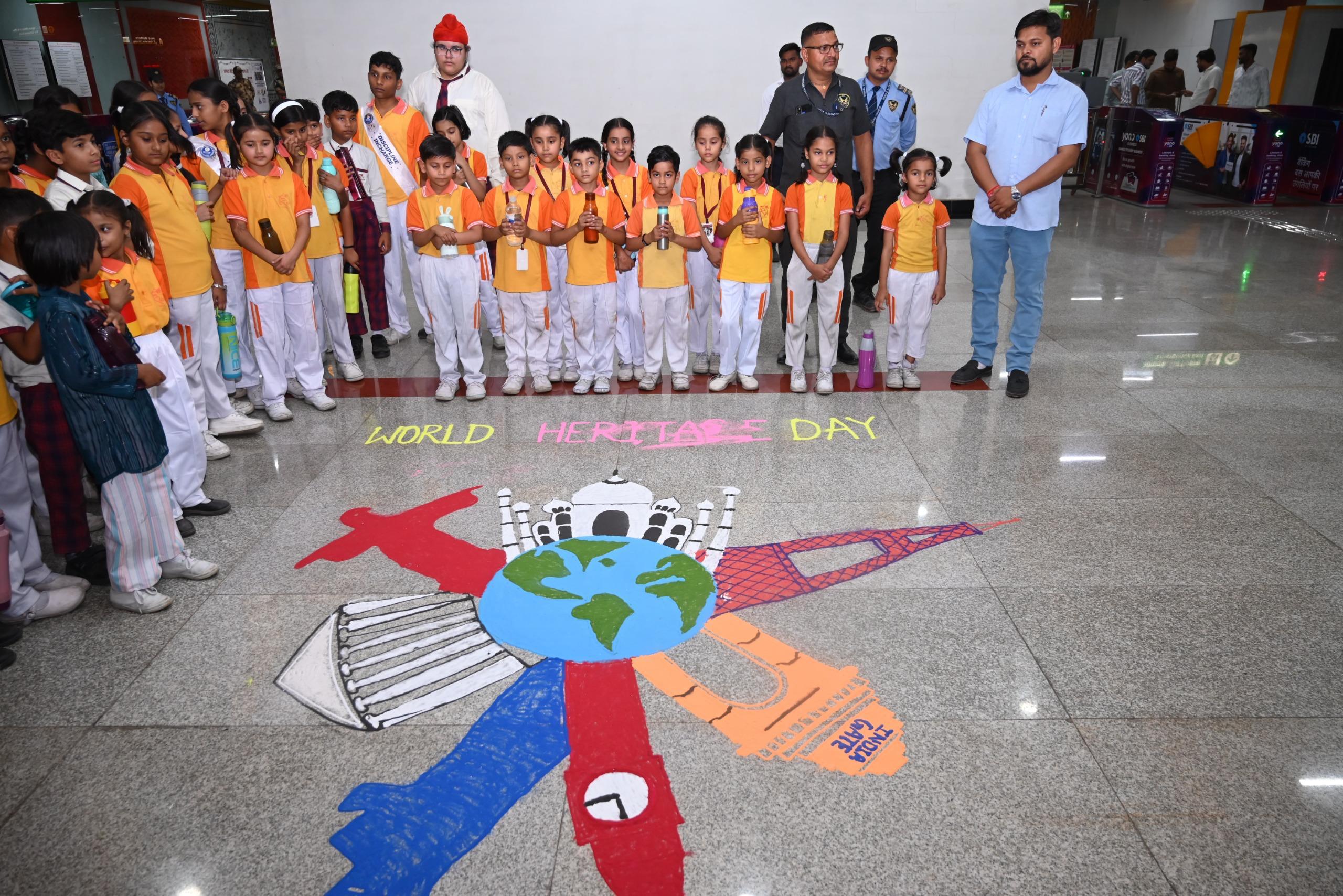विश्व धरोहर दिवस पर आगरा मेट्रो ने शहर की विरासत को सहेजने और उसे साफ-सुथरा रखने का लिए गए संकल्प के तहत जहां एक ओर डीबीआरएयू के विद्यार्थियों ने डॉ अंबेडकर चैक मेट्रो स्टेशन पर मनमोहक रंगोली बनाकर विश्व धरोहर दिवस पर ऐतिहासिक इमारतों को सहेजने का संदेश दिया।